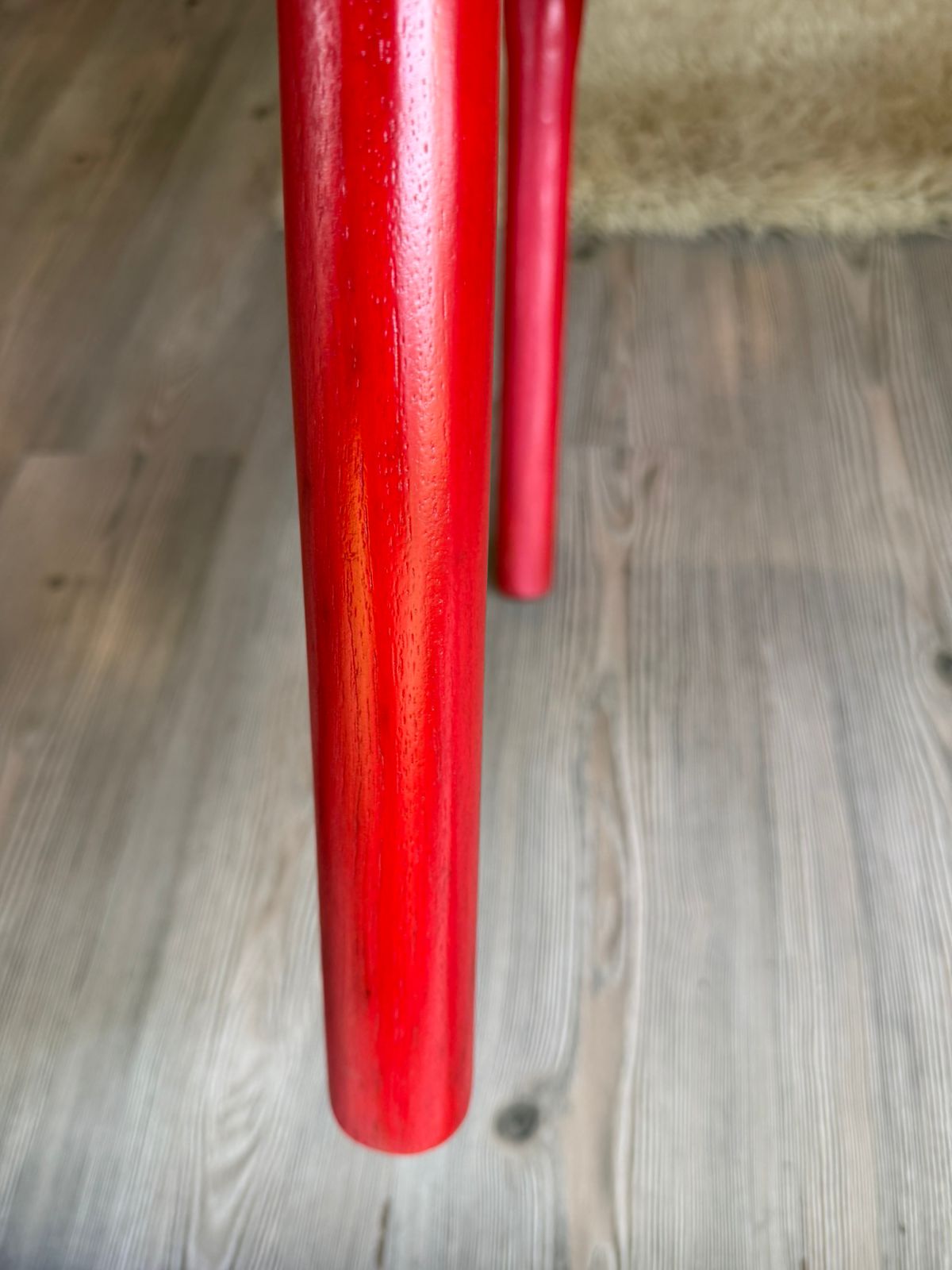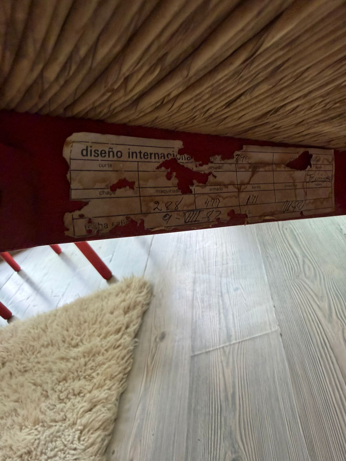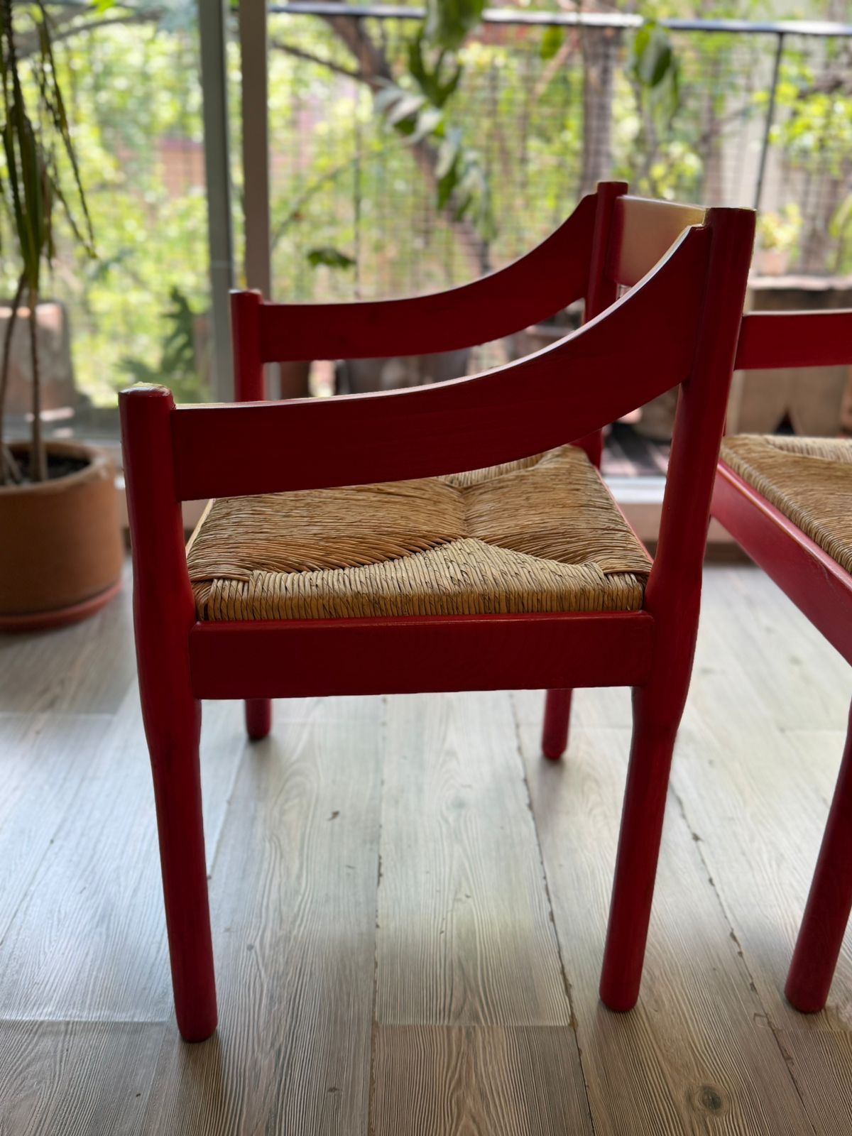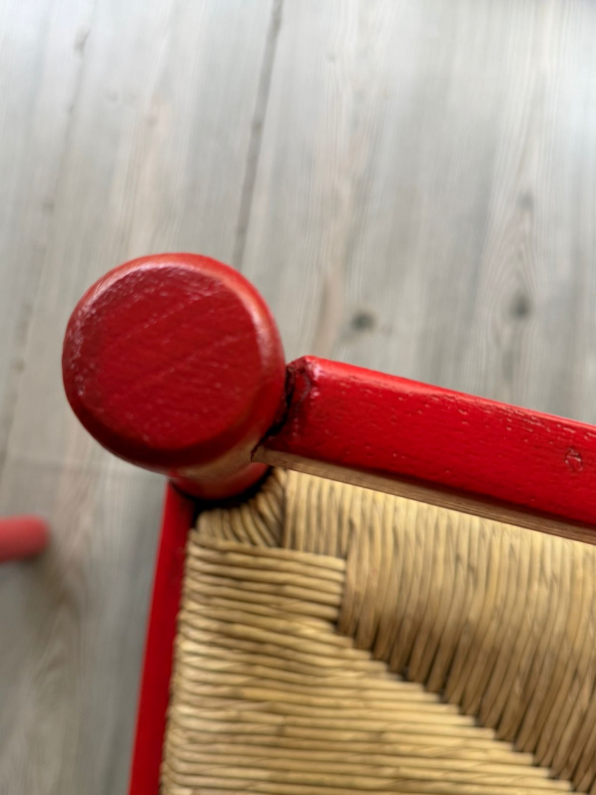 Madera de haya laqueada color rojo y asiento tejido con palma
